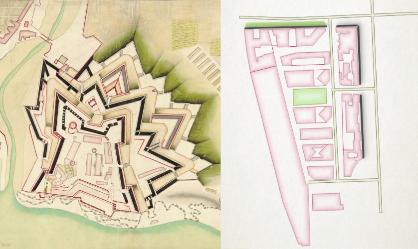 En effet, le quartier est conçu comme une forteresse, avec très peu d’accès et est quasiment invisible lorsque l’on se trouve sur le boulevard. La place publique, quant à elle, est très épurée (aménagements absents et traitement de sol uniforme plan) et privée de recoin, permettant aux forces de l’ordre de l’embrasser d’un seul regard et d’évaluer d’un seul regard la présence ou non d’indésirables. L’espace public est réduit au minimum, son interface avec les cours et les jardins d’immeuble est grillagé, avec des accès difficiles, symbolisant la résidentialisation extrême du quartier. Le quartier ne dispose que de très peu d’espaces non-privatisés qui permettraient à des indésirables de s’y reposer.